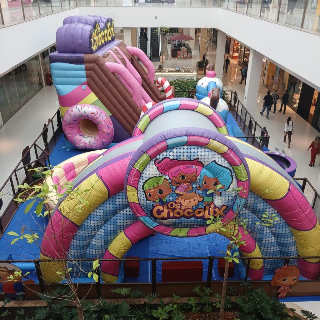 O primeiro parque inflável de Os Chocolix, trás toda a magia, colorido e o lúdico do universo de “Os Chocolix” e o Reino da Chocolândia.