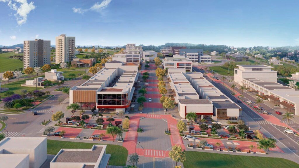 Além disso, o projeto prevê calçadas arborizadas, boulevard a céu aberto, vias largas, áreas de convivência, pistas de caminhada e ciclismo, além de espaços pet e praças, tudo para facilitar a vida de quem vive ali e incentivar deslocamentos a pé ou de bicicleta.
