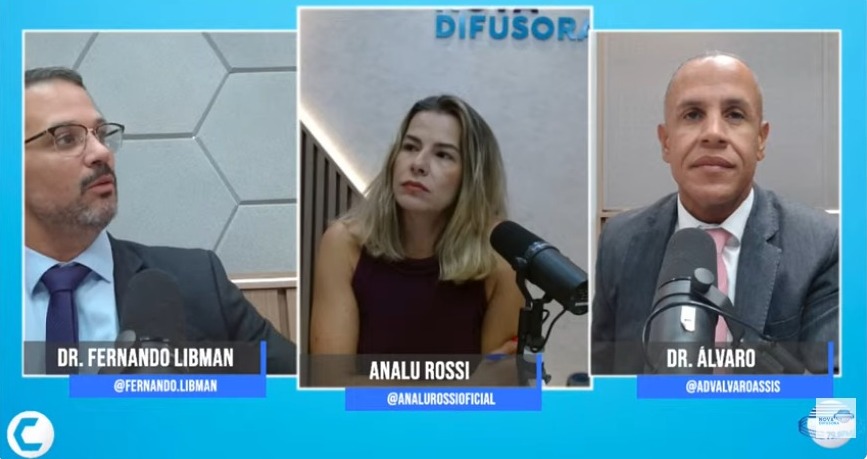 Os convidados do dia são os advogados Dr. Fernando Libman e Dr. Álvaro Assis, que participam de uma ampla análise dos principais fatos que movimentaram o noticiário nacional.